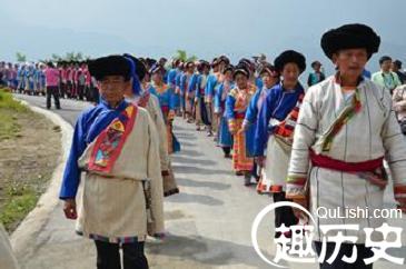 羌族古代服饰中以“披毡”最具特色。毡的制作工艺远比纺织毛布简单,其产生应该也是三千年前的事。文献记载,两汉时甘青羌人“女披大华毡以为盛饰” (《后汉书·西羌传·集解》引郭义恭《广志》)。而与之相同时期的“滇族”等羌支民族的贵族男子也多披毡。可见,“披毡”原为羌族最古老的服饰之一。唐宋时期,羌族披毡已较普遍,《新唐书·党项传》称:“男女衣裘褐,被毡。”这一服饰传统,至今仍在羌支民族彝族中保存。
