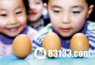 更重要的是,鸡蛋的表面高低不平,有许多突起的‘小山”。“山”高0.03毫米左右,“山峰”之间的距离在0.5一0.8毫米之间。根据三点构成一个三 角形和决定一个平面的道理,只要找到三个“小山”和由这三个“小山”构成的三角形,并使鸡蛋的重心线通过这个三角形,那么这个鸡蛋就能竖立起来孔此外,最 好要选择生下后4一5天的鸡蛋,这是因为此时鸡蛋的蛋黄素带松弛,蛋黄下沉,鸡蛋重百下降,有利于鸡蛋的竖立。