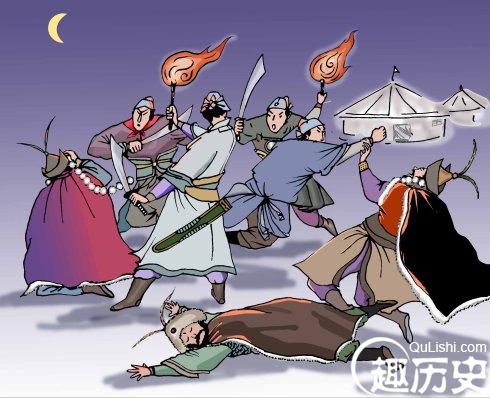 这天夜里,班超就和他同去的三十六个同伴,冲入匈奴人住所,奋力死战,用少数人力 战胜了多数的匈奴人,达到了预期目的。
