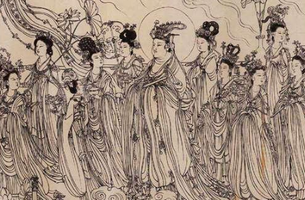 那冉冉欲动的白云,飘飘欲飞的仙子、使整幅作故具有"天衣飞杨,满壁风动"的艺术感染力。画面没有任何款识,但徐悲鸿一眼就看出这是一幅出于唐代名家之手的艺术绝品。它代表了我国唐代人物画白描技法的杰出成就。无怪乎徐悲鸿的好友--张大千和谢稚柳见之也对其夸赞不已。