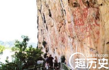 画面临江,崖壁明显内斜。画面长约172米,距江面最高约90余米,底部高出江面30米,距离山脚一级阶地3~10米不等。绘画颜料是赭红色的赤铁矿粉,用动物脂肪稀释调匀,用草把或鸟羽直接刷绘在天然崖壁上。