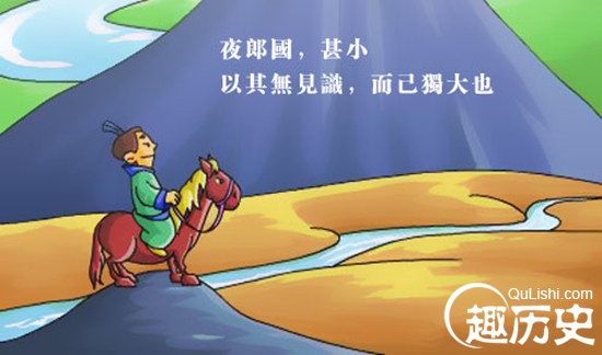 有一次,汉朝派使者来到夜郎,途中先经过夜郎的邻国滇国,滇王问使者:“汉朝和我的国家比起来哪个大?“使者一听吓了一跳,他没想到这个小国家,竟然无知的自以为能与汉朝相比。却没想到后来使者到了夜郎国,骄傲又无知的国王因为不知道自己统治的国家只和汉朝的一个县差不多大,竟然不知天高地厚也问使者:?汉朝和我的国家哪个大?”