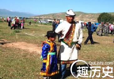 男子一般穿高领左大襟长袍,系紫红色或蓝色腰带,戴圆筒平顶锦缎镶边的白毡帽,穿高筒皮靴。