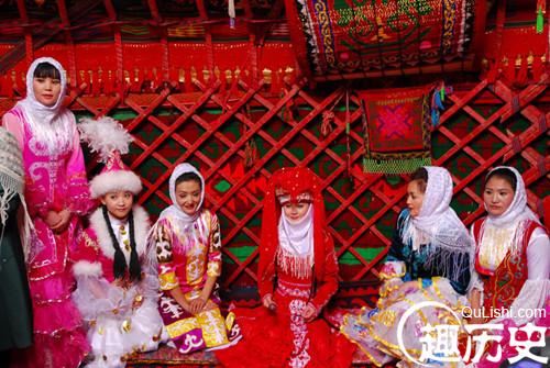 晚上,新娘来到嫂子家与新郎见面,这时的毡房外挤满了宾客,人们奏起传统的民间乐器“库姆孜”,跳起会面舞,唱起一曲曲喜庆的歌,直到深夜,当讨得礼物,放新郎进入洞房后,才尽兴离去。