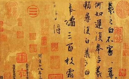 以“块”、“面”的造型角度观察,“奉橘”两字的紧密,与“三百枚”三字的疏朗,形成大的反差;另外,“可多得”三字用笔轻灵流动,也与右行“奉橘”等字的厚重也形成反差。反差关系增强了作品丰富的内涵。以单字分析,“三”字点画虽全为短横,而起笔略方,收笔较圆。一方一圆,加之三横角度不同,姿态各异。再如“得”字,布白天然,笔画又无处不曲。偏旁“寸”字笔锋调转微妙,尤其是最后一点,出人意料,反手书成。《奉橘帖》诸多微妙之处,并非全部都是经营安排,而是“文章本天成,妙手偶得之”(南宋陆游语)。因此,凡书法绝妙之迹,处处可学,亦处处不可学,书画在法,而其妙在人也。