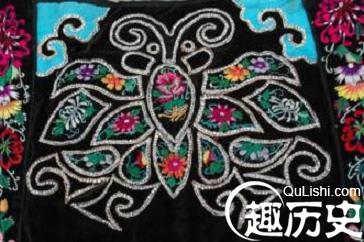 馆中所藏的苗族绣片与服装中,很多都可以发现蝴蝶的踪影,其中的蝶文衣最美丽。有个绣片上绣的花蝶纹很特别,它将蝶与花两种不同形态的生物,融合到了一起,叫人分不清究竟是蝶还是花。