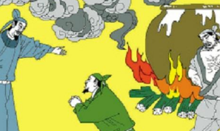 周兴得意扬扬地说:“这个新办法就是拿一个大瓮,把它放在火上烧烤,谁不肯招供,就把他放在大瓮里烤,不由他不招!”来俊臣听了,连连叫好。他一面说,一面叫人去搬一只大瓮和一盆炭火到大厅里来,把瓮放在火盆上,盆里炭火熊熊。