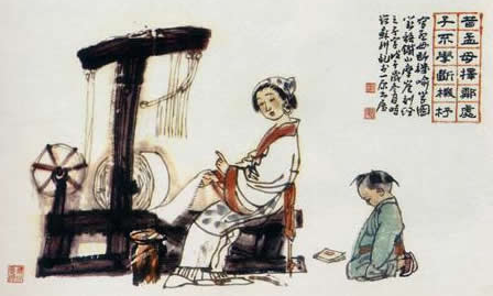 有一天,逃学的孟子背着书包假装从学堂回家。母亲叫他过来,问:“娘织的布好不好?”“好啊。”孟子正在奇怪母亲为什么问这个,却见母亲一声不吭地拿出一把锋利的剪刀,将织成的一段布“咔嚓,咔嚓”剪成两段。