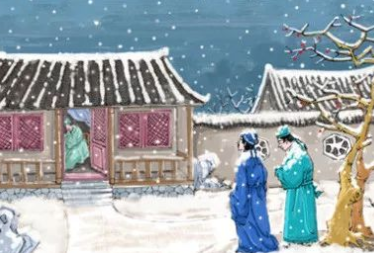 一天拜见程颐,程颐正闭着眼睛坐着,杨时与同学游酢(音zuò)就侍立在门外没有离开,程颐已经察觉的时候,那门外的雪已经一尺多深了。