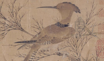 该图画幽篁细枝,停着一只戴胜鸟,正在返首回望。该图笔法工整细致,既有南宋院体画意又自设细染,使画面清雅和谐,构图简洁明快。