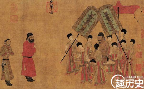 唐代阎立本所绘《步辇图》取材于贞观八年吐蕃首领松赞干布与文成公主联姻的事件,描绘了唐太宗李世民接见吐蕃使者禄东赞的情境。
