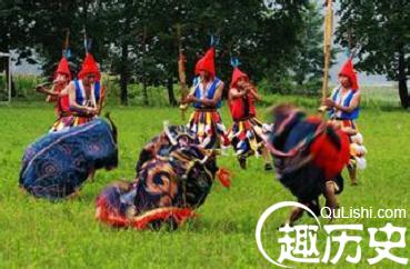 我们知道,牛是农耕劳动的重要生产工具。因此,千古以来,农耕民族都喜爱牛并通过各种艺术形式歌颂牛,表达爱牛的心情,寄托人们对农业丰收的祈愿。其中,一些民族还有与牛有关的风俗和节日,比如水族“斗角舞”。“斗角舞”在水族过节、丧葬、祭祀等活动中都可以跳,尤其是秧苗拔节抽穗后,由舞队有威望的头人摘一稻穗在芦笙上,表示“芦笙吹涨了谷穗”,用舞蹈迎接丰收年。斗角舞对耕牛嬉戏、打闹的形象化表达正是表现了水族人对牛的感情,实际也是一种耕作文明的体现。