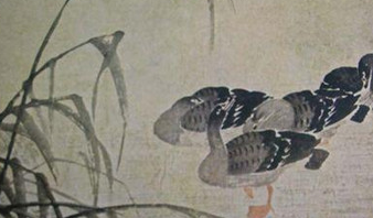 边寿民师法前人,兼取众长,尤其用力于徐渭、陈淳一派。他论画云:“画不可拾前人,而要得前人意。”亦要师法造化,熟悉描绘的对象。边寿民所居苇间书屋,周围芦苇成片,往来候雁,往往停憩于苇间水际。在长期接触观察当中,他对雁的形体、动作、情态、习性,了如指掌。他的难能可贵大过人处,在于他热爱关怀往来栖止的雁,视之如友朋,知情着意,体贴入微,从而构思顿生妙谛,下笔每聚深情。由此形成边氏芦雁的笔墨疏简、以形写神、写意传神、出神入化的特色。