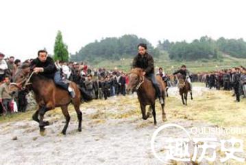 青年人赶端坡不但为了看赛马,还把这盛大的聚会看成是物色情侣的好机会。跑马之前也要举行--个简便的祭典。人们在跑道中央设一供席,上摆各种各样的祭品,由寨中德高望重的长者主祭,长老伫立桌前神情肃穆,端斟满酒的酒杯,口中念念有词,大多是对祖先的怀念和吉祥如意的话语。祭典完毕,寨老跃身上马在跑道上遛上一圈,方宣告赛马开始。水族的赛马形式非常独特,叫做"挤马"。当指挥者声号令,骑手扬鞭策马,在山谷互相冲闯,在抗争中挤出山谷向坡顶冲去,谁先到远坡顶,谁就是胜者。