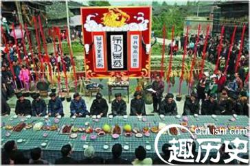 临近端节,水乡山寨处处洋溢着节日的喜庆气氛,到了大年除夕,家家户户打扫得一干二净,人们忙着杀猪宰鸭,磨豆腐,开塘捉鱼等等一片繁忙,好不热闹。除夕之夜,各家各户忌荤吃素,主要进行庄重的祭祖仪式。祭祖仪式颇为讲究,在堂屋中设一供席,摆上鱼苞韭菜,素煮豆腐、糯米饭、瓜果等特色祭品,有的人家还摆放崭新的衣帽鞋袜以及柴刀、镰刀、锄头等生产用具,完毕后,一家老少围坐一团,由长者念颂先祖的功绩,然后供奉祖先,最后举杯相邀,连声“秀、秀、秀”一饮而尽,以示对祖先的敬重和怀念。这天晚上,人们相悦通宵达旦,各自小饮,整个村子灯火通明,铜鼓声声。