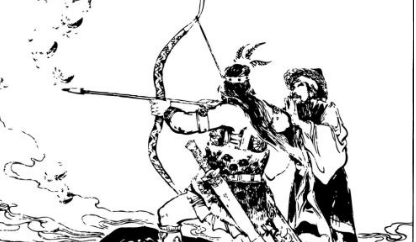 后羿听了夏王的话,一言不发,面色变得凝重起来。他慢慢走到离箭靶一百步的地方,脚步显得相当沉重。然后,后羿取出一支箭搭上弓弦,摆好姿势拉开弓开始瞄准。