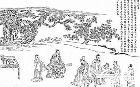 这张图片主要是关于孔子学琴的故事,故事出自于《史记》。从图片中可以看到,图中有几个人在学习弹琴,其中一人是孔子,还有一人是教导孔子的老师师襄子,这两人就是孔子学琴这个故事的主角。