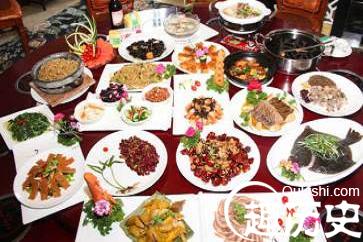 第一大碗素菜:主要由豆类组成,但必须是白色的,看起来比较高贵典雅。如大白豆、小白芸豆,或者是有色的豆子,也要经过浸泡后,将有色的外皮剥去,不仅显得洁白高雅,而且使人有一种细腻纯洁的外观感受,吃起来也鲜腻滑口,口感煞是可人。这道菜可以根据自家地里出产的情况,来进行筛选。