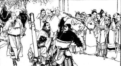 飞大喝:“害民贼!认得我么?”督邮未及开言,早被张飞揪住头发,扯出馆驿,直到县前马桩上缚住;攀下柳条,去督邮两腿上着力鞭打,一连打折柳条十数枝。玄德正纳闷间,听得县前喧闹,问左右,答曰:“张将军绑一人在县前痛打。”玄德忙去观之,见绑缚者乃督邮也。